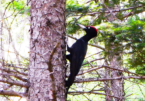 キツツキ類のクマゲラは、日本全国に広がる三菱マテリアルの森のうち、特に北海道の山林において、比較的広範囲で確認されています。特徴は何といっても、カラスほどの大きな黒い体にトレードマークの赤い帽子。
