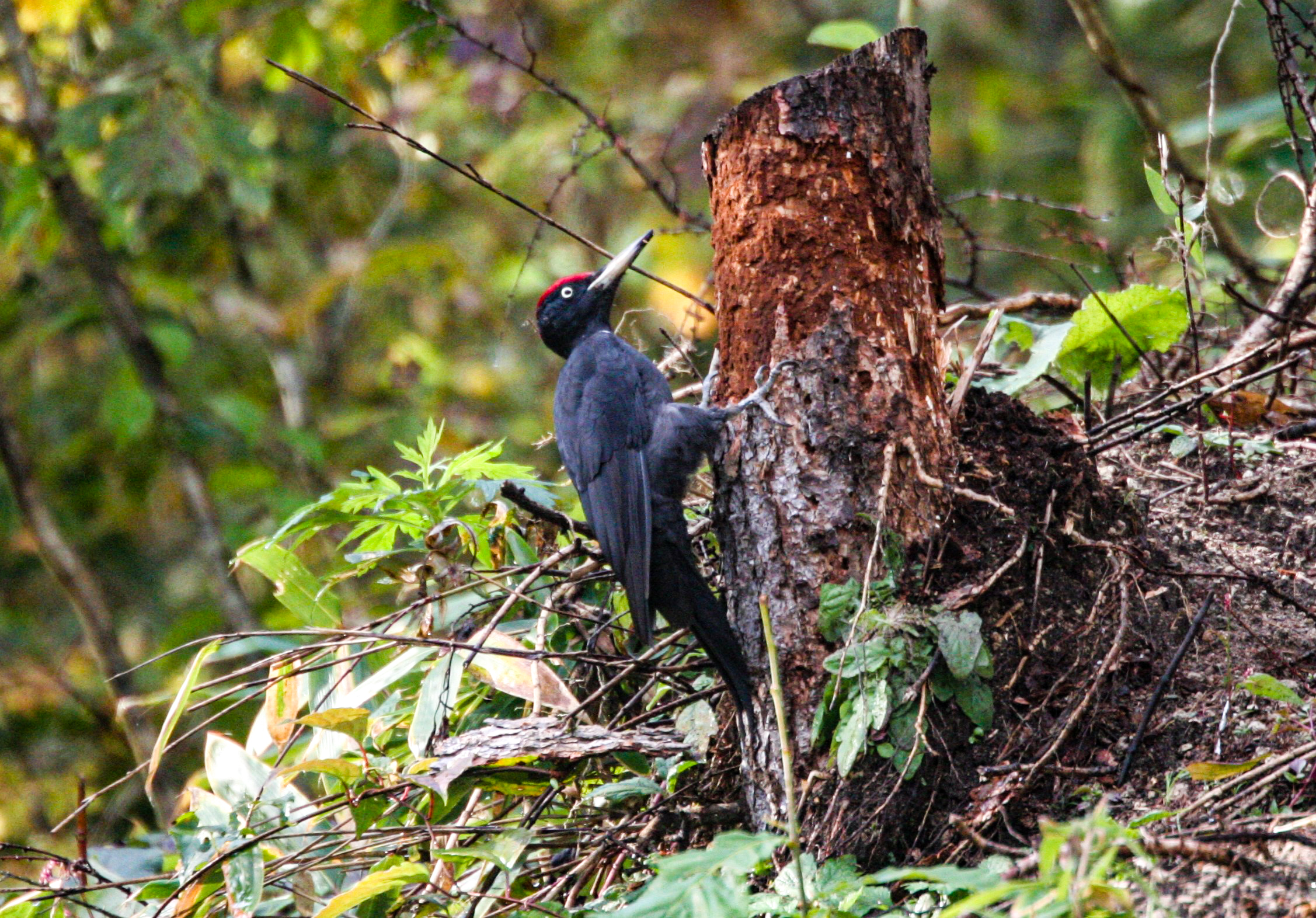 クマゲラは好奇心が強いのか警戒心が薄いのか、私たちが林内に立ち入って森林の調査を行っていると、すぐ近くまで遊びに来てくれることもあります。そんなクマゲラですが、春になると木の穴に巣作りして子育てを行うので、この時期に林内で作業を行う場合は、クマゲラの子育てを邪魔しないよう細心の注意を払っています。