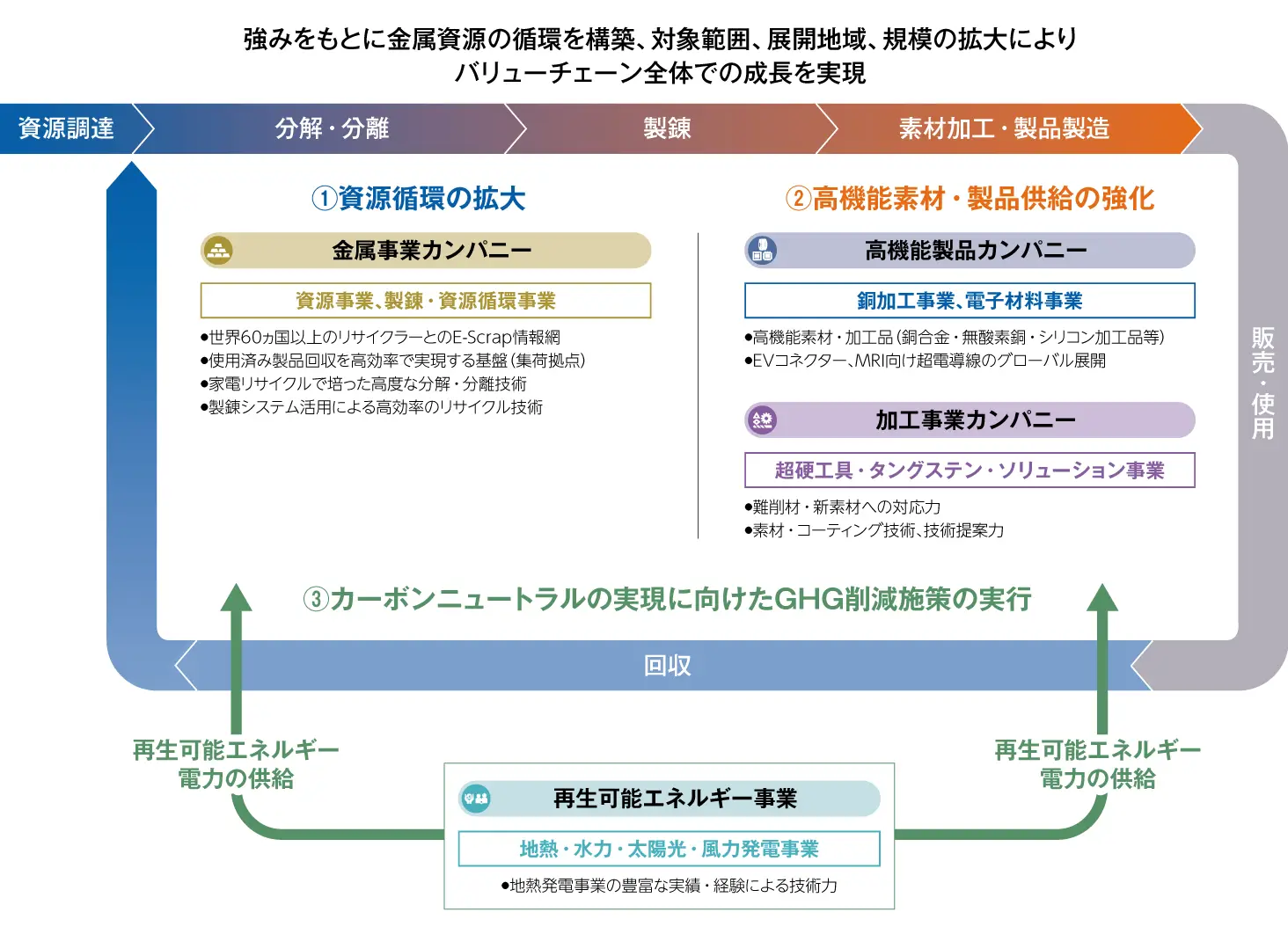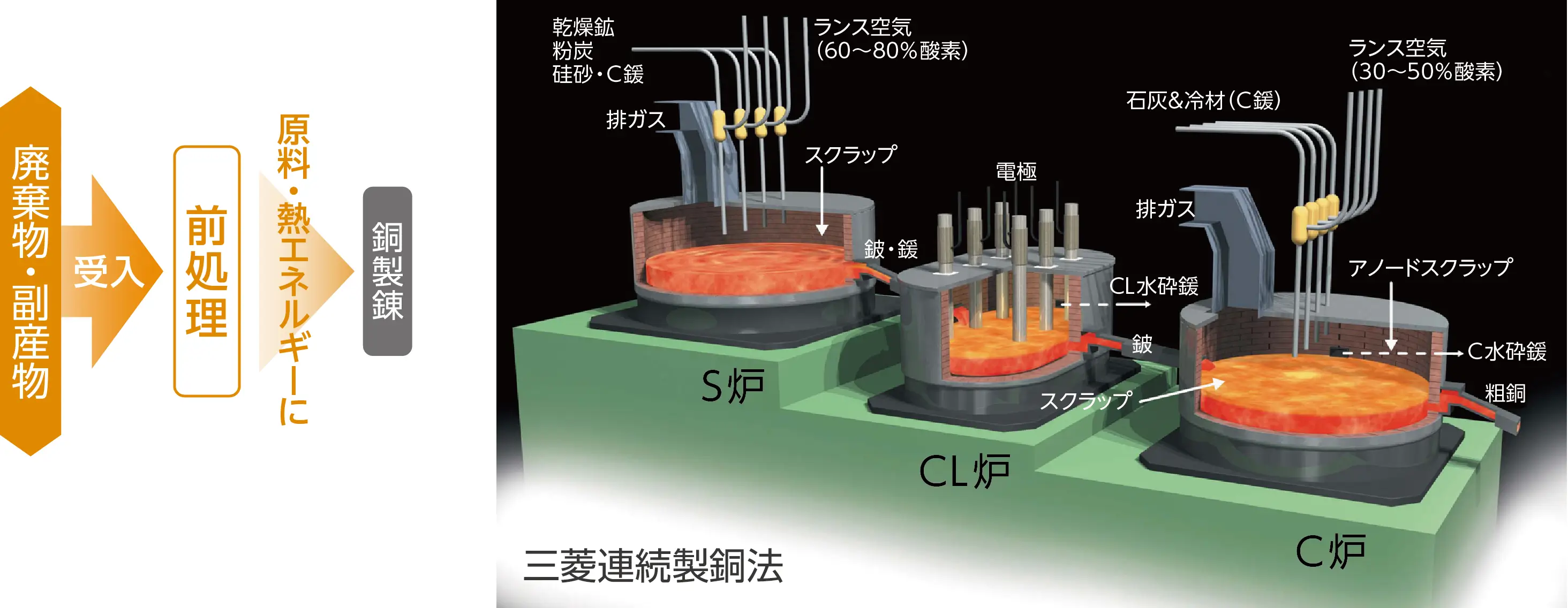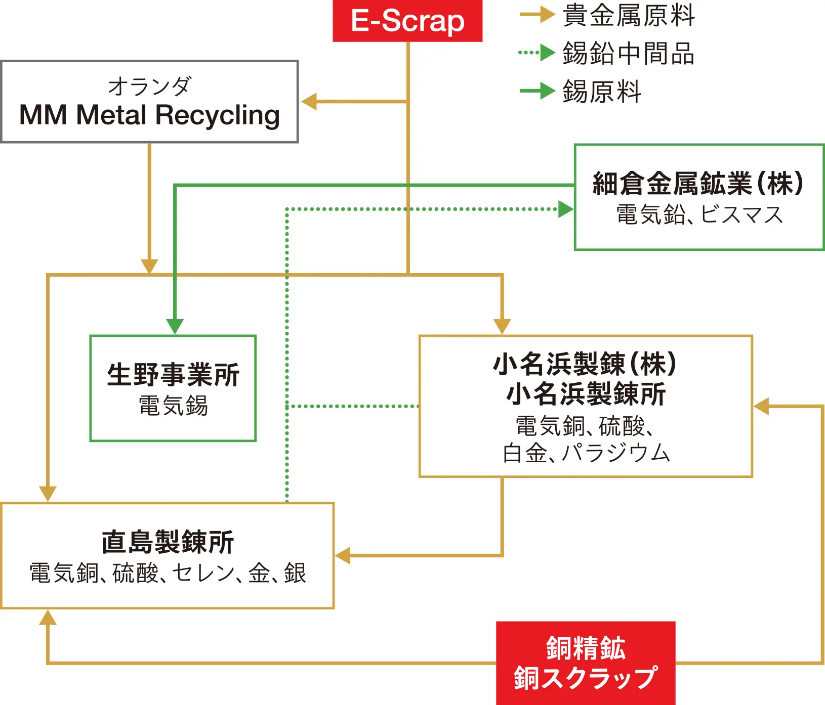 家電製品は、鉄・アルミニウム・銅等の金属や、ガラス、プラスチック、ゴム等、多くの素材をさまざまに組み合わせてつくられています。家電メーカーと連携のうえ操業を行っている家電リサイクル工場※3では、手解体および破砕・選別処理を行い、部品・素材の選別を高度化し、回収した素材の付加価値および再商品化率を向上させています。また、銅系回収物やプリント基板は、銅製錬プロセスを利用して銅や貴金属を回収し、当社グループのシナジー効果を最大限活用しています。2024年度に当社出資の5社6工場で家電製品2,613千台(6社7工場では3,516千台)をリサイクルしたことにより、削減された埋め立て処分量は12.1万t※4に相当します。