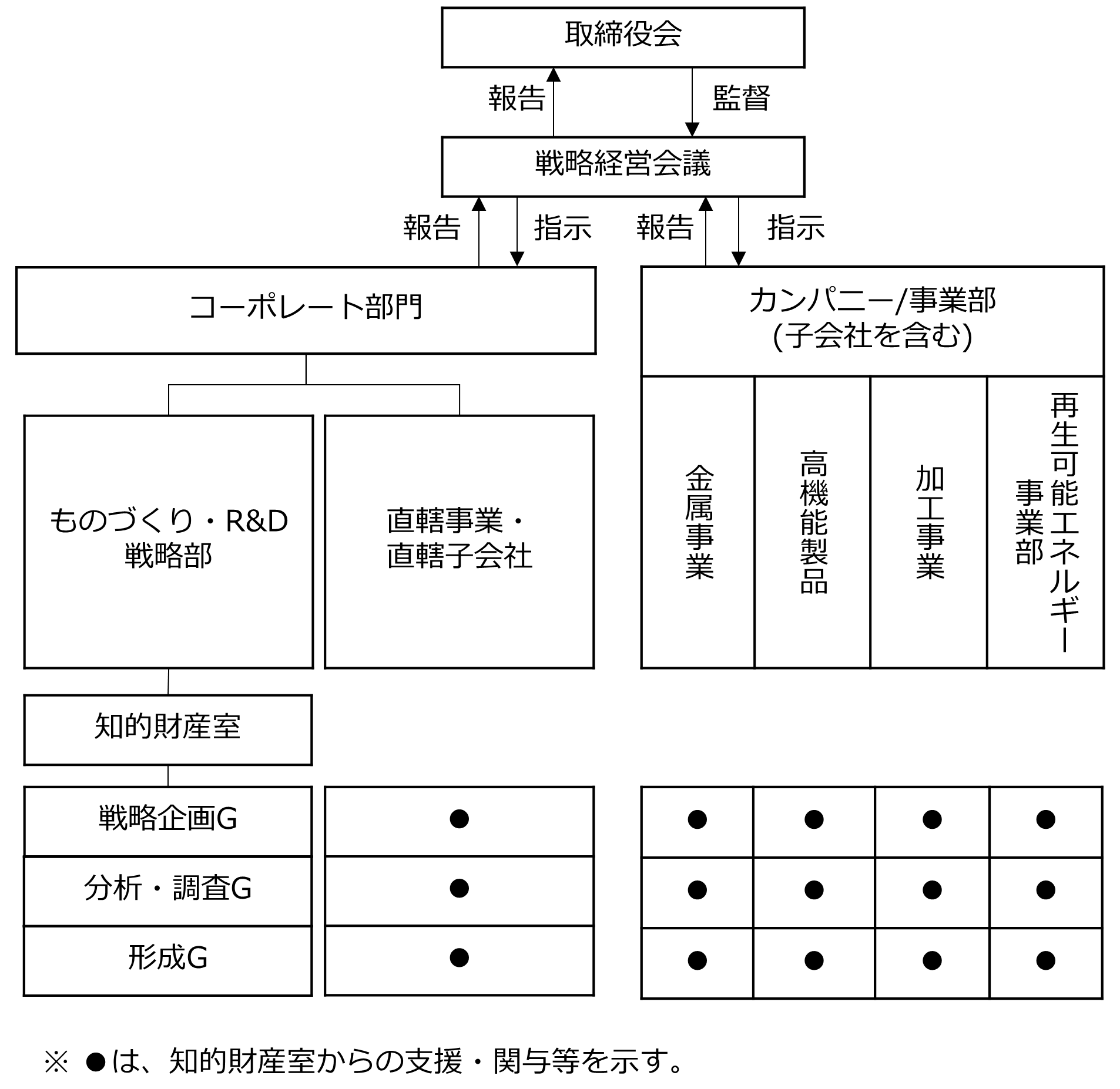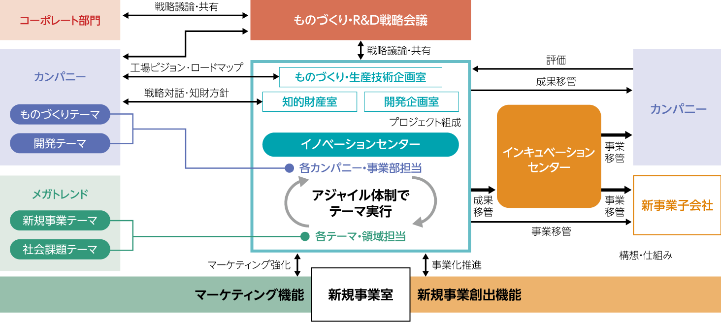 工場ビジョンは、ビジョンづくりと施策フォローアップの効率化を図るための実効性のある仕組みを検討していきます。ものづくり経営フレームワークでは、工場マネジメントや業務プロセスの質を高い目線で評価・把握するよう「工場革新力」「管理力」「改善力」「運営力」「量産化力」「組織・人材育成力」の6つの評価に集約し2024年度より運用しております。2025年度は、工場別格化に向けた気づきを得られるツールへと軌道修正したものに、より目線の高い設問を追加していきます「革新力」を含む総合評価を継続的に使用できるよう、評価項目および内容のさらなる改善を行います。技術強化では引き続き「生産プロセス高度化」は複数テーマに取り組み、スマートファクトリー化構想立案と実現に向け、工場への適切な技術によるソリューションを提供し、品質向上や省人化、製造リードタイムの短縮等を実現する要素技術を確立していきます。また、デジタル技術を活用したデータ収集・利活用の基盤を整備し、改善活動のスピードアップ、業務高効率化を促進していきます。