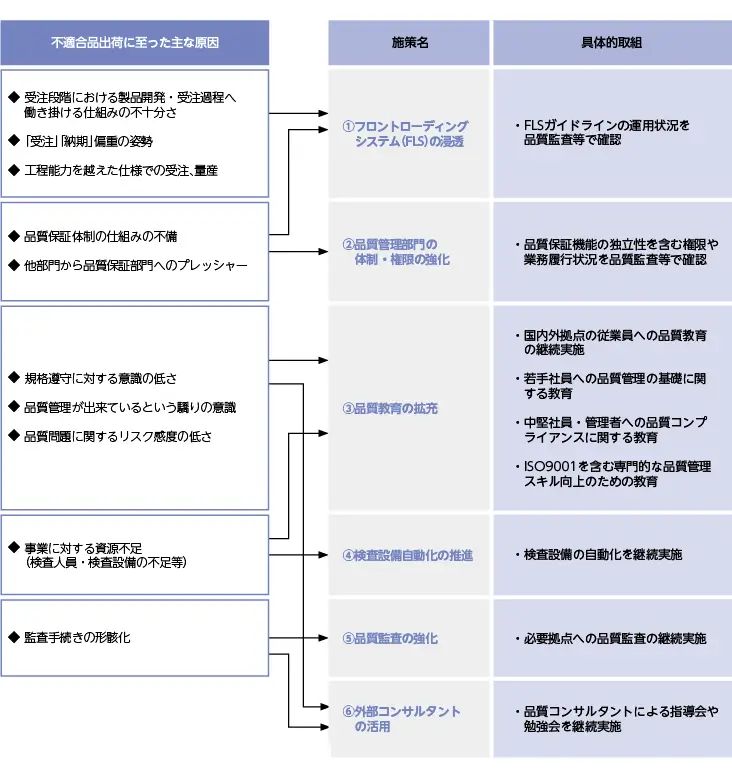 当社グループは、品質管理に関するガバナンス体制を強化するために、「品質基本規定」を運用しています。同規定では、お客さまに満足していただける一級品の製品を提供することを目指す「グループ品質方針」を策定するとともに、さらにこれを補完する「品質管理に関するガイドライン」を制定し、運用しています。当社グループの全ての組織は、製品およびサービスの品質向上に関わる過程で、設計・開発の段階から製造・出荷・販売に至るまでの品質保証体制を確立し、その維持に取り組んでいます。